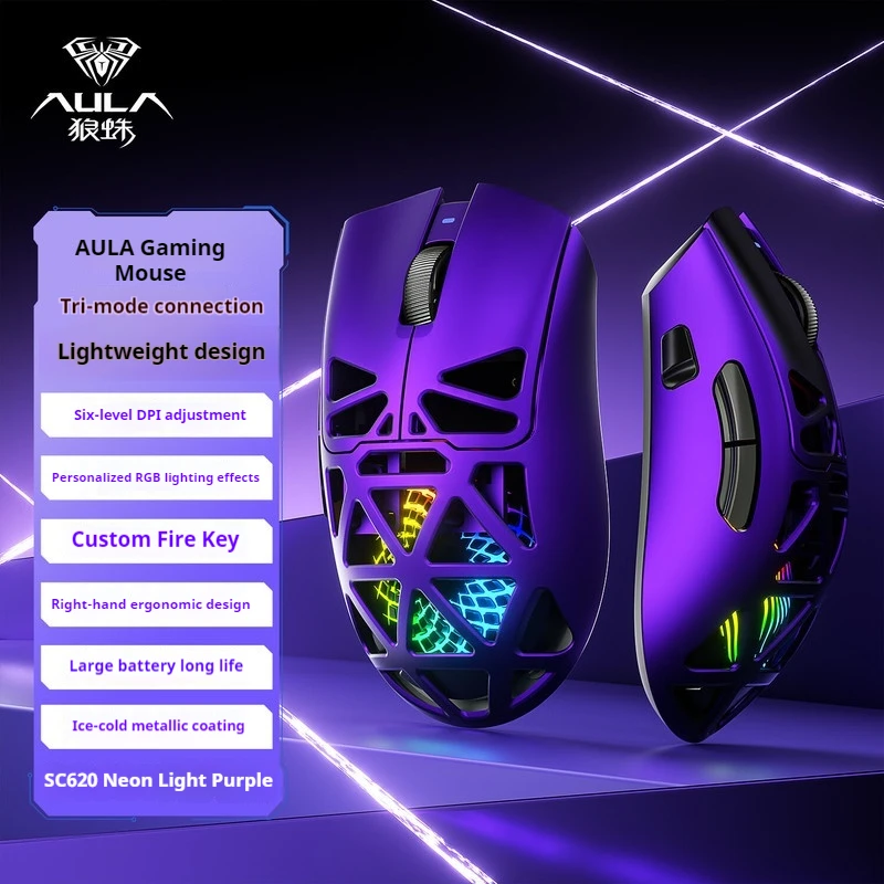 Aula Sc620 ratón inalámbrico Bluetooth de tres modos ahuecado diseño ligero Sensor Paw3311 juego deportivo ratón ordenador niño regalo