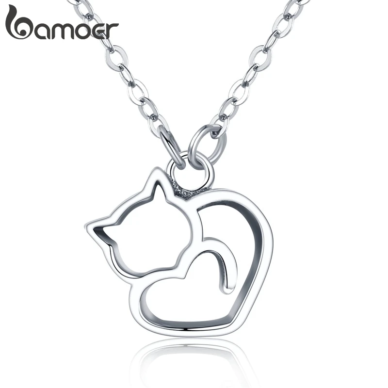 BAMOER 100% Plata de Ley 925 minimalista encantador gato colgante collar lindo Animal cuello cadena para mujeres regalo de cumpleaños SCN188