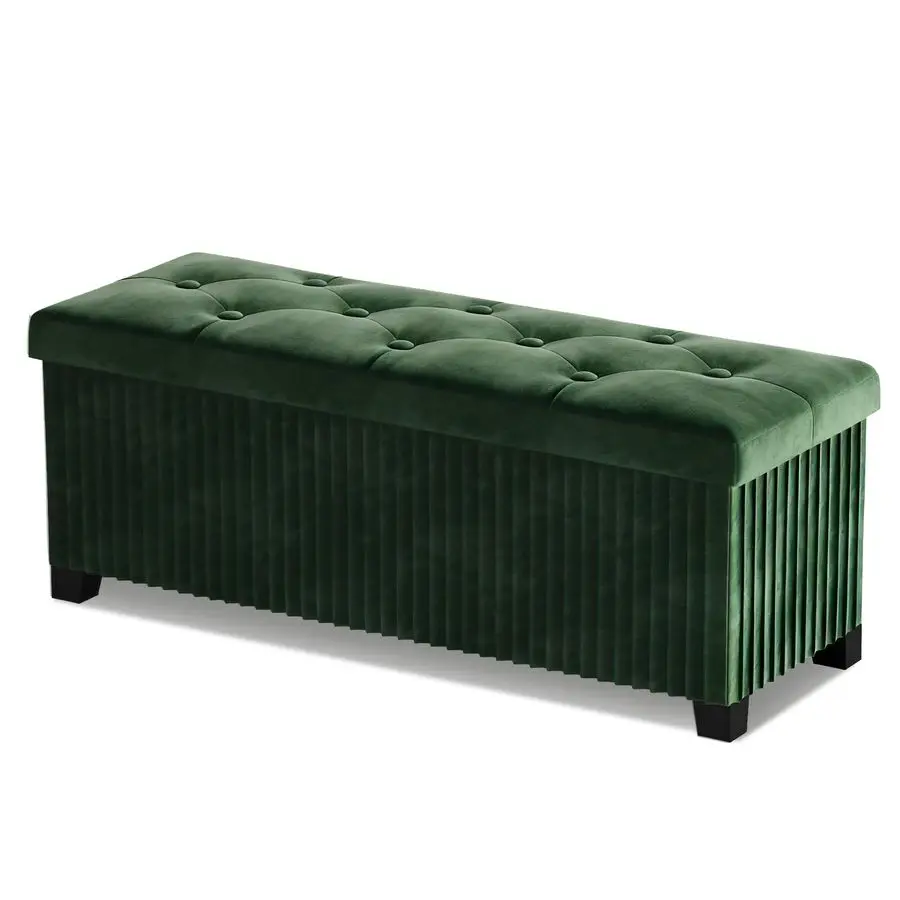 Banco Otomano, Otomano Plegable de 43 Pulgadas con Patas, Reposapiés de Terciopelo, Banco para el Pie de Cama, Baúl de Almacenamiento para Sala de Estar, Dormitorio