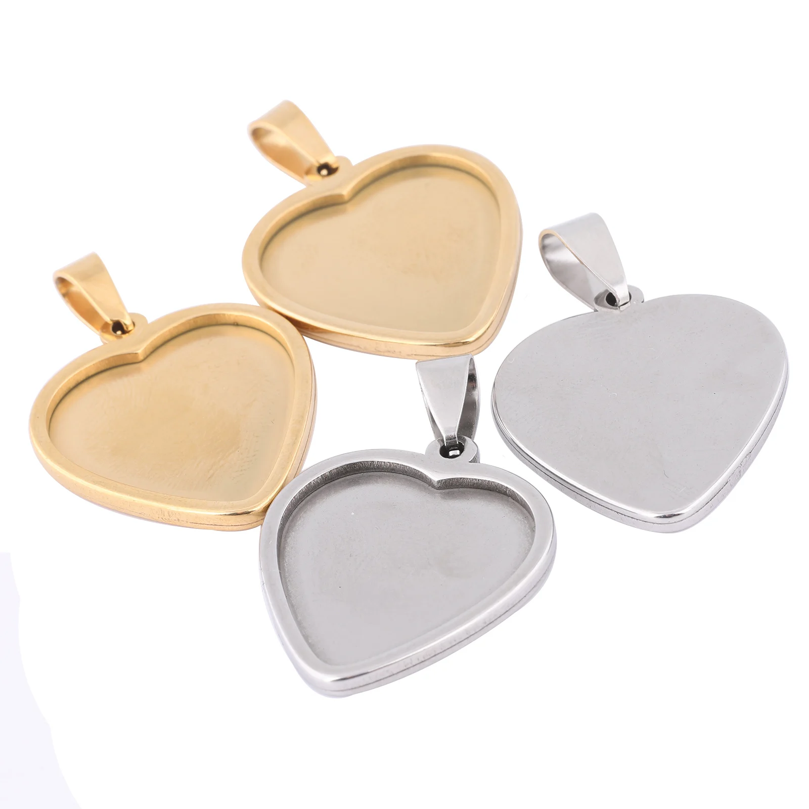 Bandejas de cabujón de corazón de 20mm, 5 uds., ajustes de Base de colgante chapado en oro de acero inoxidable para fabricación de joyas y collares con dijes