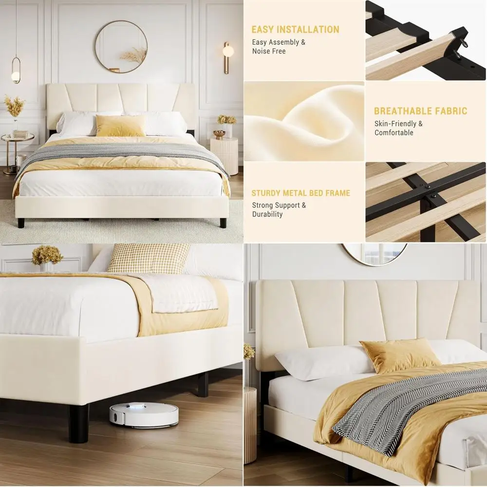 Base de Cama King Size Dainslef con Cabecera Ajustable, Moderna Base de Cama King con Plataforma Tapizada en Terciopelo y Soporte de Listones de Madera