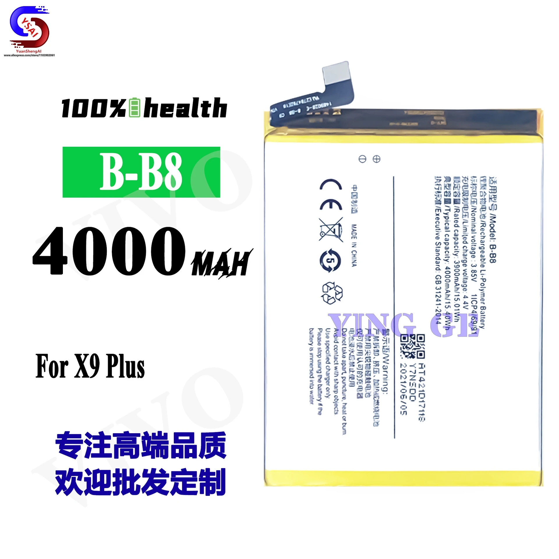 Batería de teléfono móvil vivo x9plus, 5 piezas, gran capacidad, B-B8 de fábrica, venta al por mayor