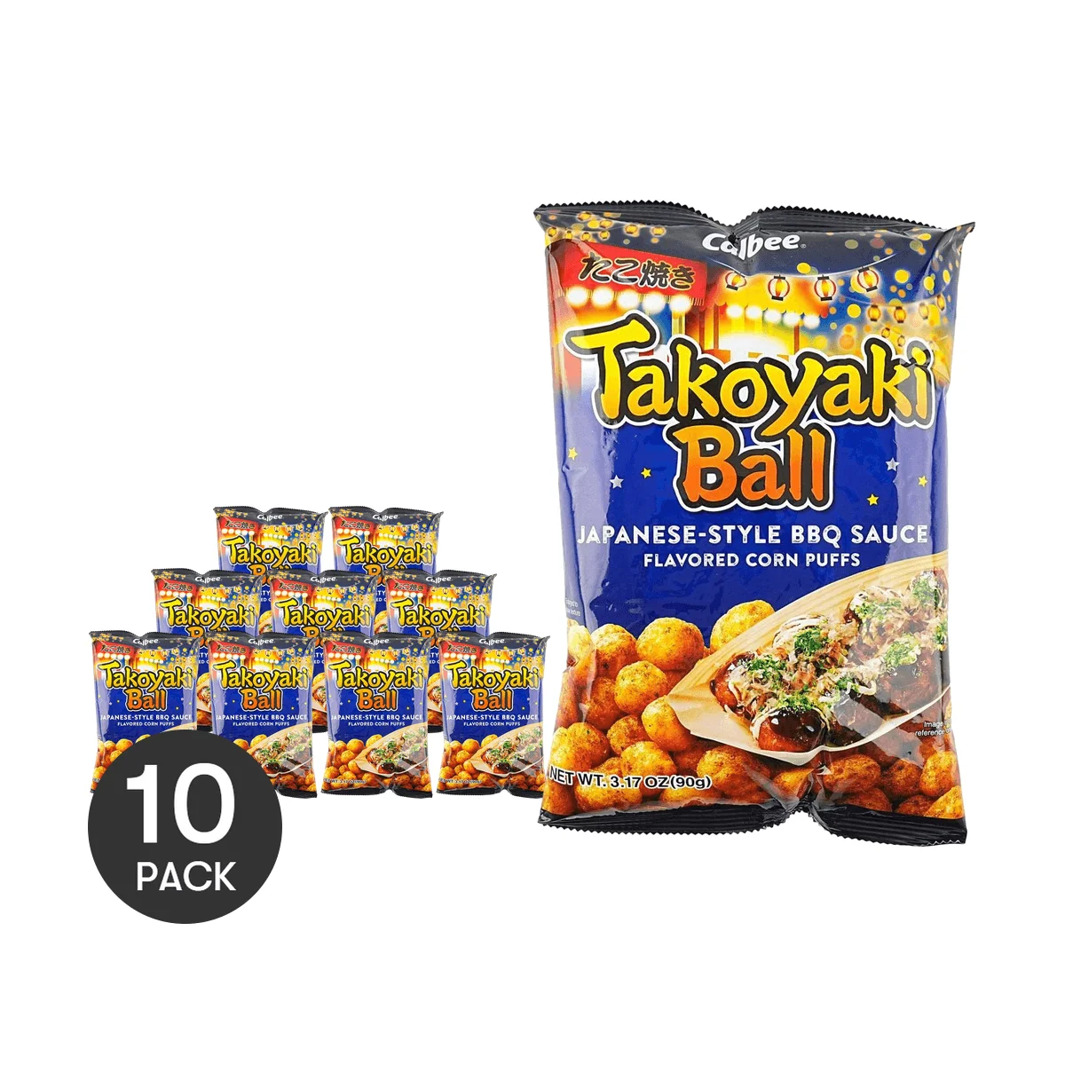 Bolas CALBEE Takoyaki, aperitivos crujientes de mariscos, 3,17 oz x 10 paquetes, 10 paquetes