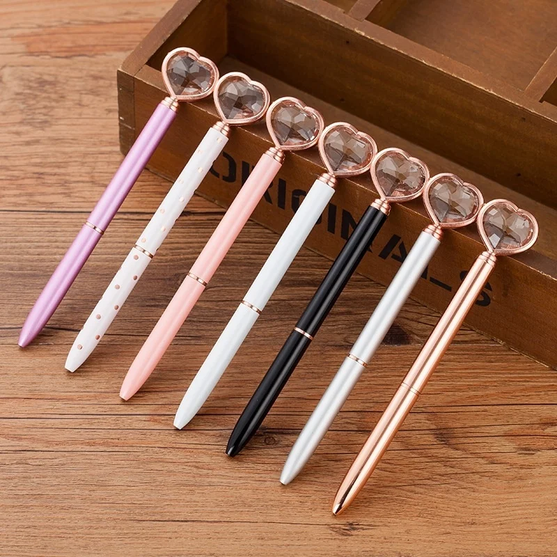 Bolígrafo de cristal Kawaii con forma de corazón para niña, Metal de diamante grande, moda