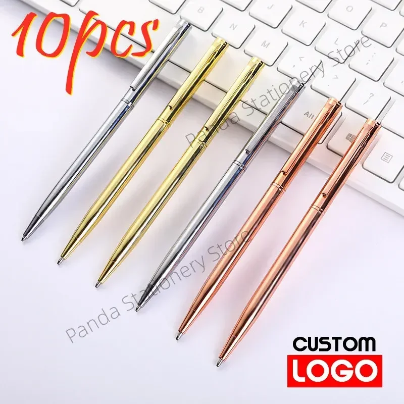 Bolígrafo de Metal con logotipo personalizado, venta al por mayor, regalo de negocios, bolígrafo de firma para recepción, regalo de cumpleaños, papelería para estudiantes, 10 Uds.
