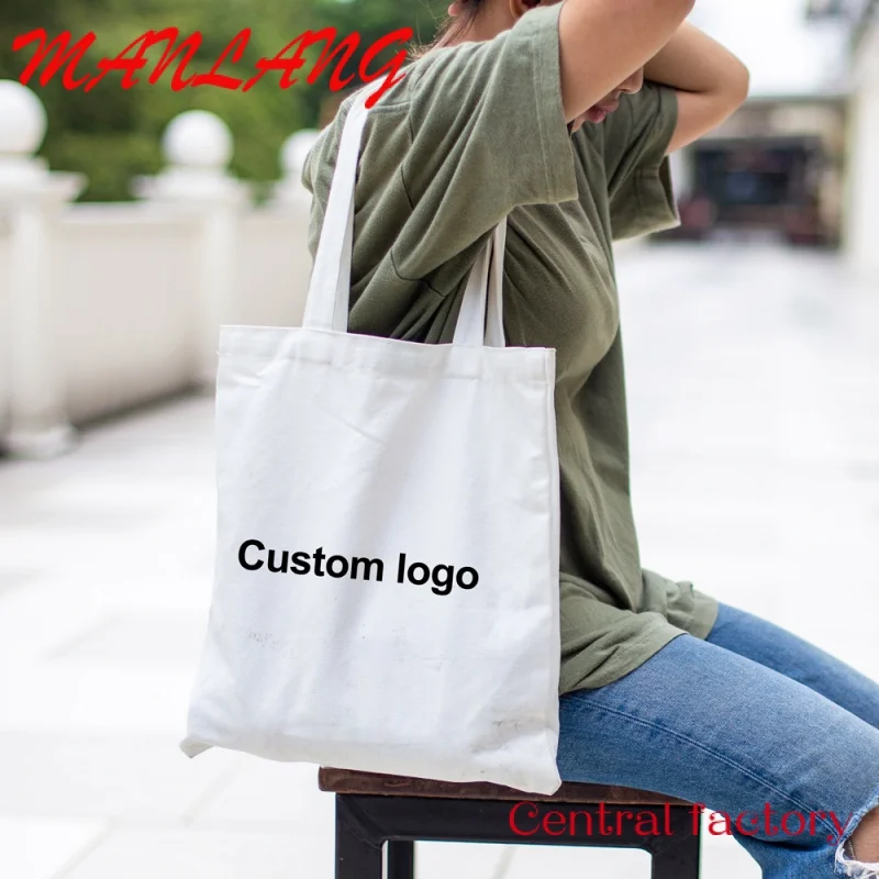 Bolsa grande de lona de algodón con logotipo personalizado, bolso de mano de tamaño impreso de compras, respetuoso con el medio ambiente, reciclado, reutilizable, liso, a granel