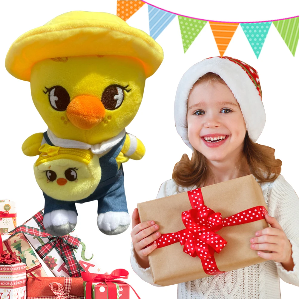 Bonita muñeca sentada de felpa de 15X20 CM con sombrero y bolso cruzado pequeño, muñeca turística de jardín de infantes de primavera para regalo sorpresa de vacaciones