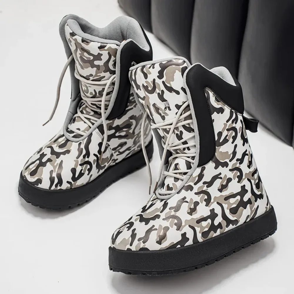 Botas altas de camuflaje para hombre, botas cálidas gruesas suaves a prueba de frío, antideslizantes para calle al aire libre, regalos de vacaciones, nuevo invierno 2025 Chic