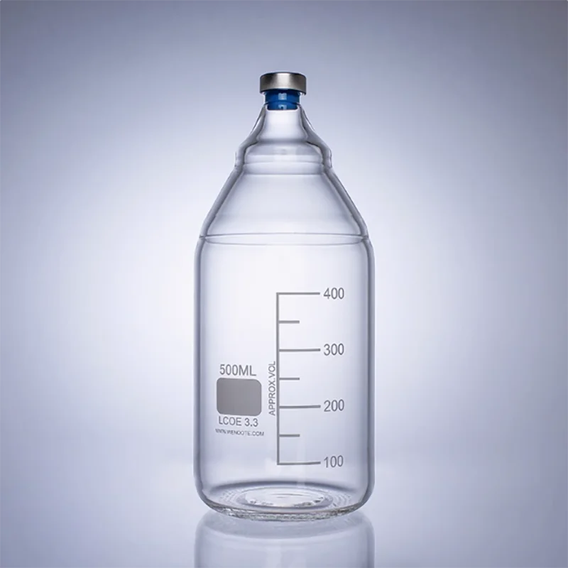 Botella de espacio para la cabeza con tapón de butilo, botella anaerobica, botella de fermentación, botella de reacción, botella de cultivo, botella de vidrio con mandíbula 250 500 1000 20