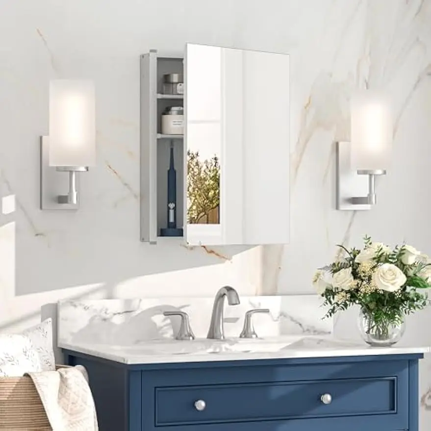 Botiquín pequeño de 14 x 18 pulgadas, requiere ensamblaje, botiquín de baño plateado con espejo, ligero, ajuste gratuito