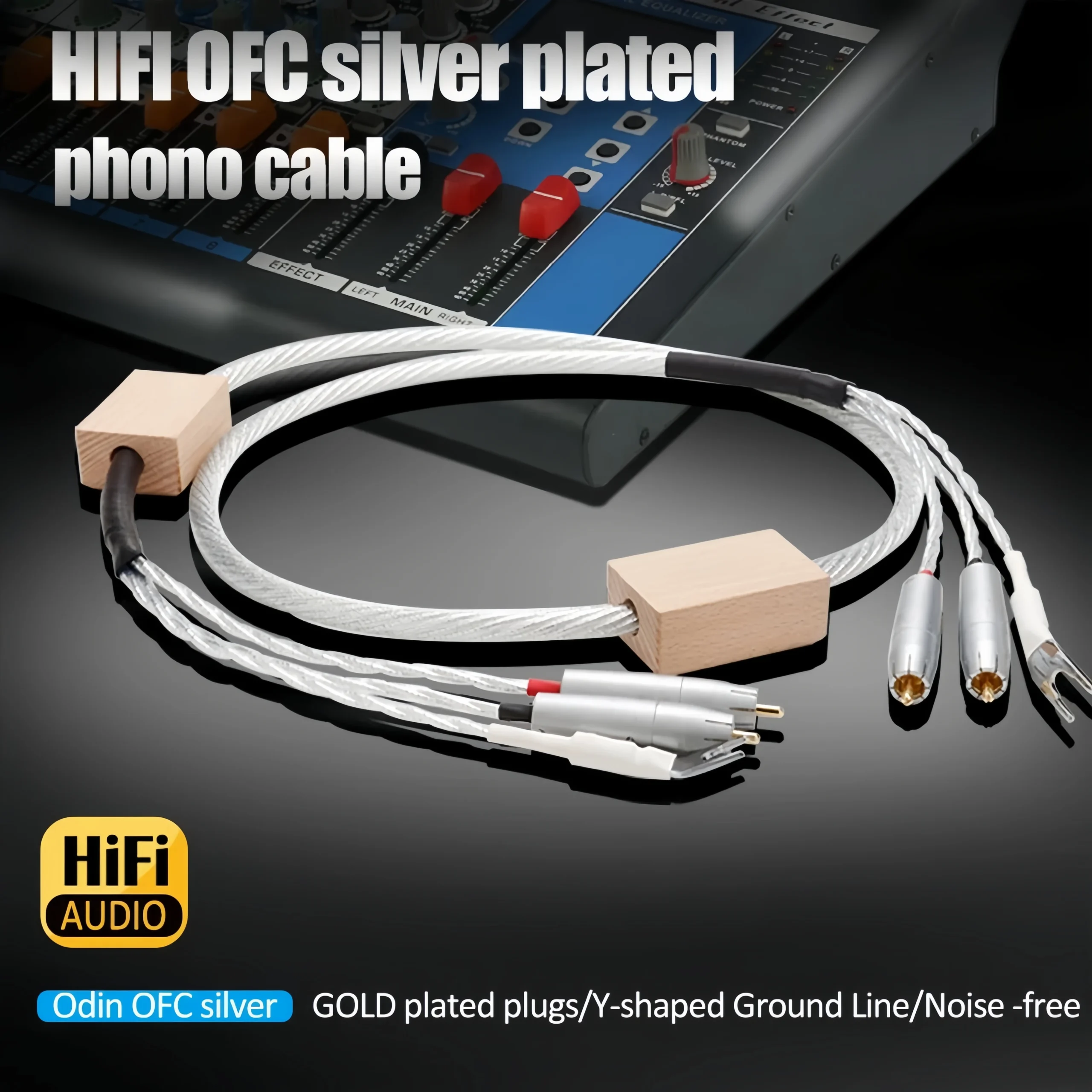 Cable de fonógrafo RCA Tonearm Chapado en plata Audiophile LP Disco de vinilo amplificador de CD de alta fidelidad Cable de tierra con enchufe Y