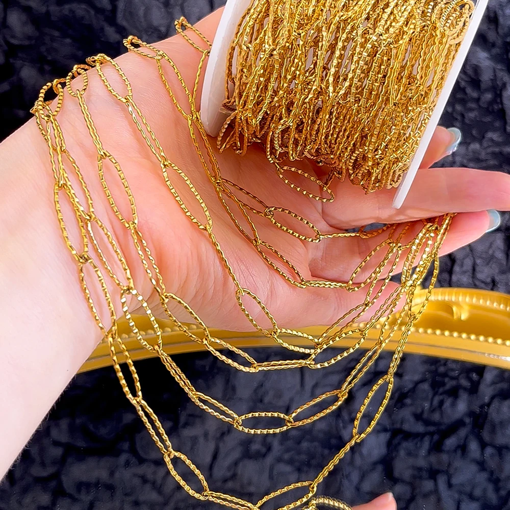 Cadena de eslabones de cadena ovalada hueca en relieve esmerilado de acero inoxidable, 2M, 1M, 0,5 M, DIY, collar, pulsera, bolso, cadenas, accesorios al por mayor