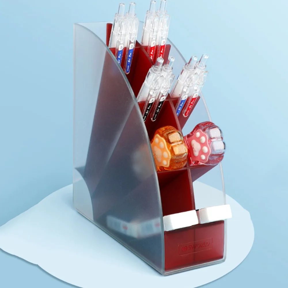 Caja de almacenamiento de bolígrafos de 8 rejillas de inserción inclinada, soporte de bolígrafo de 8 rejillas para ahorro de espacio, organizador de papelería de almacenamiento de gran capacidad