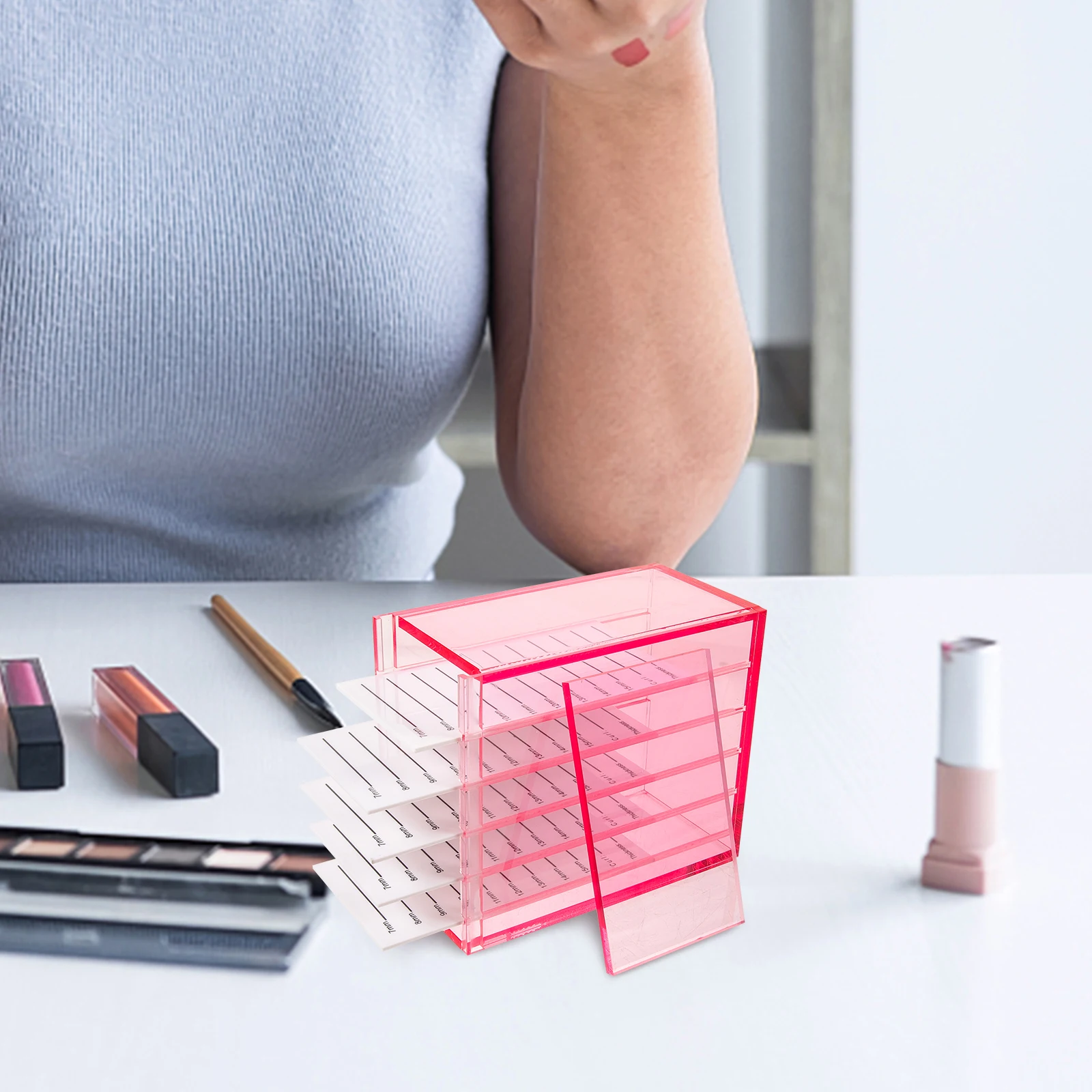 Caja de almacenamiento de pestañas acrílicas de 5 niveles, organizador de pestañas postizas, contenedor transparente, estuche de maquillaje portátil de viaje para escritorio, gran capacidad