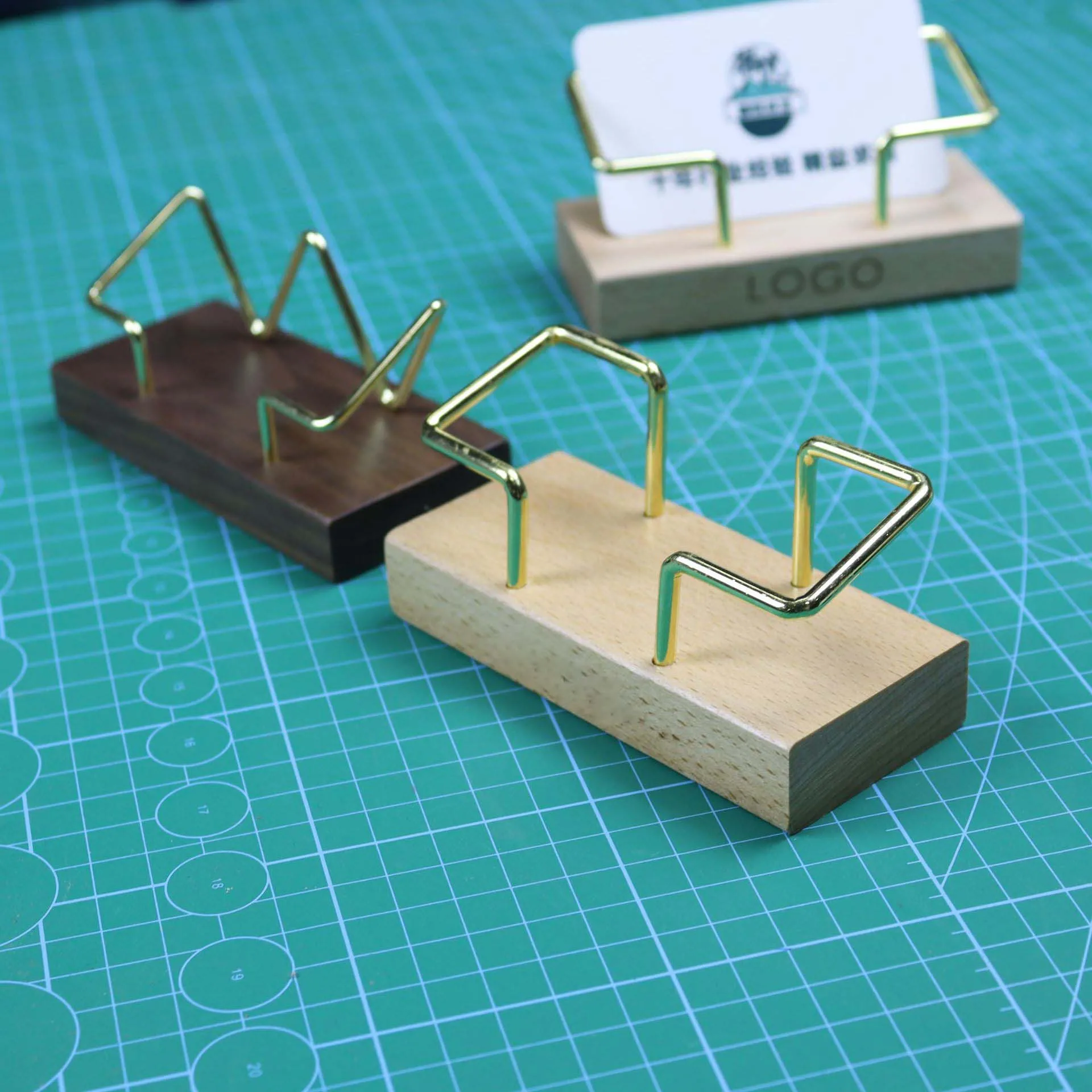 Caja de tarjetas de visita de madera, soporte para tarjetas de visita, escritorio de Metal conveniente para oficina, escuela, trabajo, Accesorios de escritorio