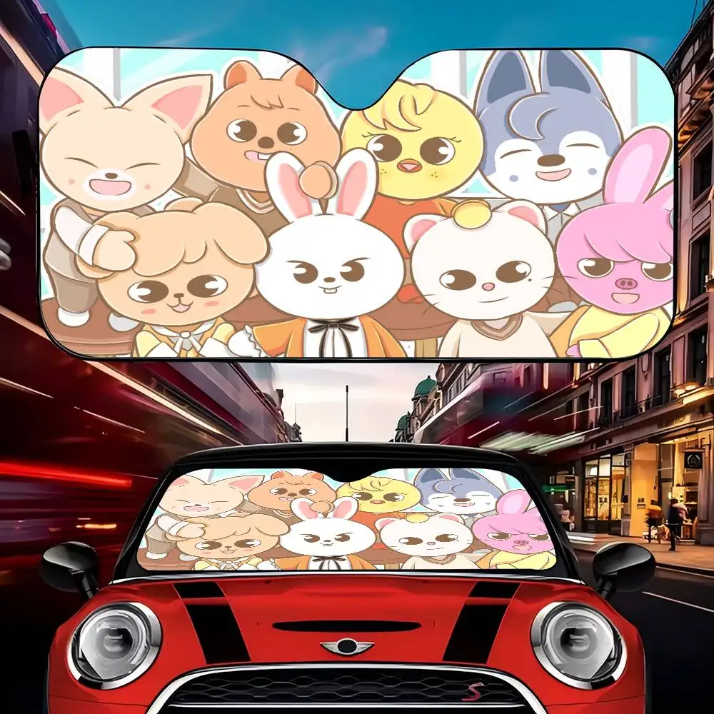 Caliente Kpop Stray Kids Skzoo película de ventana de dibujos animados parabrisas calefactable parasol visera de ventana delantera de coche herramientas de protección Solar