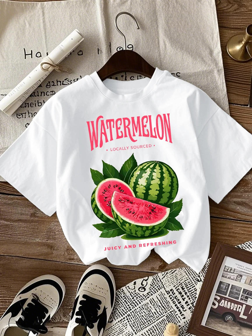 Camiseta con estampado suculoso y refrescante de sandía para mujer, ropa informal de algodón con cuello redondo, Top informal de moda, camiseta de Hip Hop