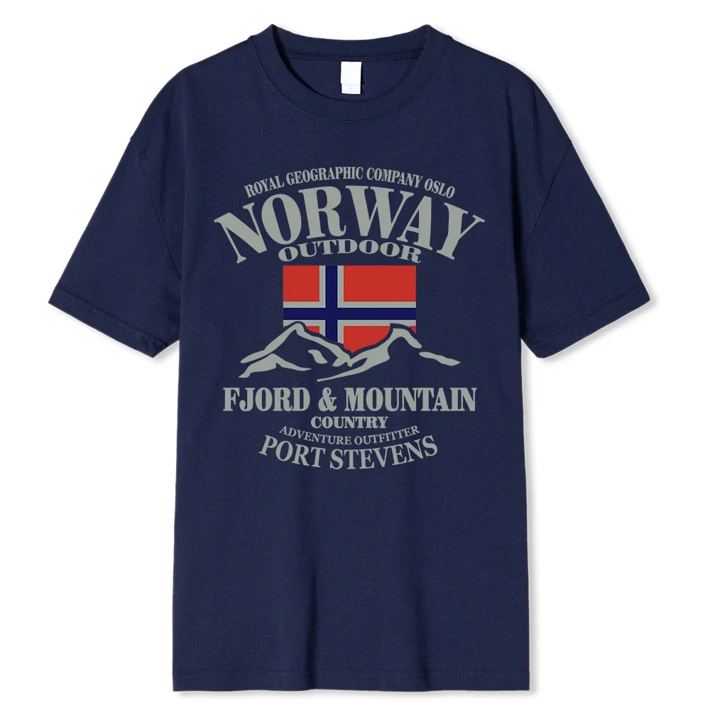 Camiseta de algodón con cuello redondo para hombre, camisa divertida de manga corta con bandera de Noruega, Fjord Mountain, Crazy Hip Hop, talla grande, Verano
