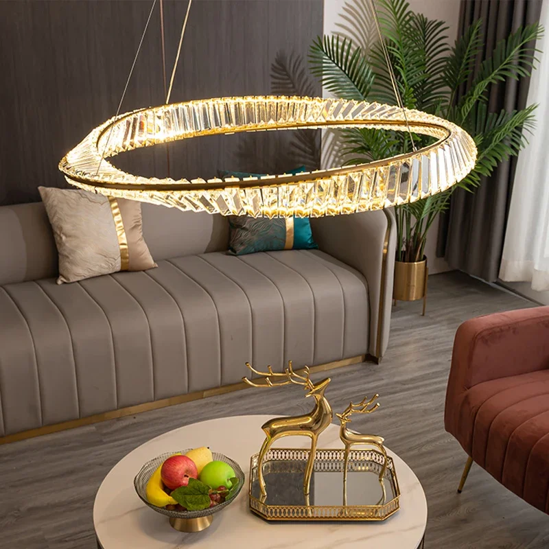 Candelabro de Cristal postmoderno para decoración de sala de estar, anillo de diseño italiano moderno, Lustre de Cristal, candelabro de comedor, iluminación interior