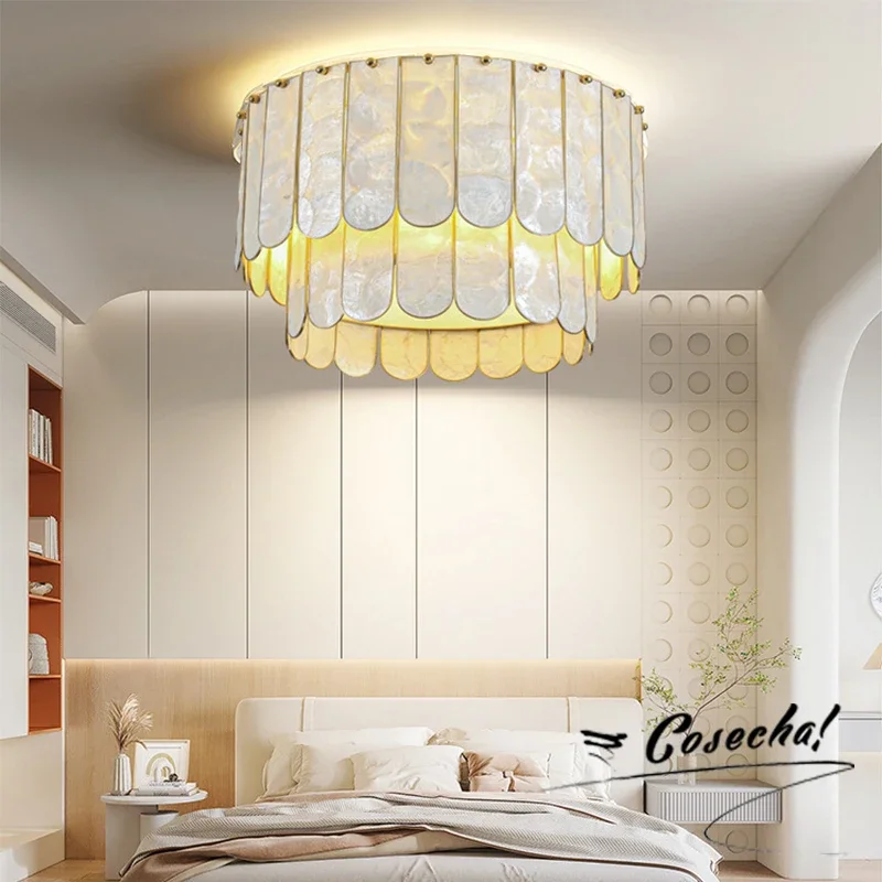 Candelabro de techo de concha blanca de leche nórdica, candelabro de techo de lujo Simple, accesorio de luz Led para dormitorio, pasillo, cocina
