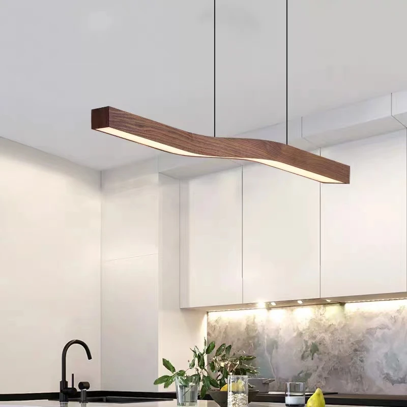 Candelabro lineal Retro, lámpara de tira larga de grano de madera de nogal, lámparas colgantes para restaurante, iluminación artística para comedor y Loft