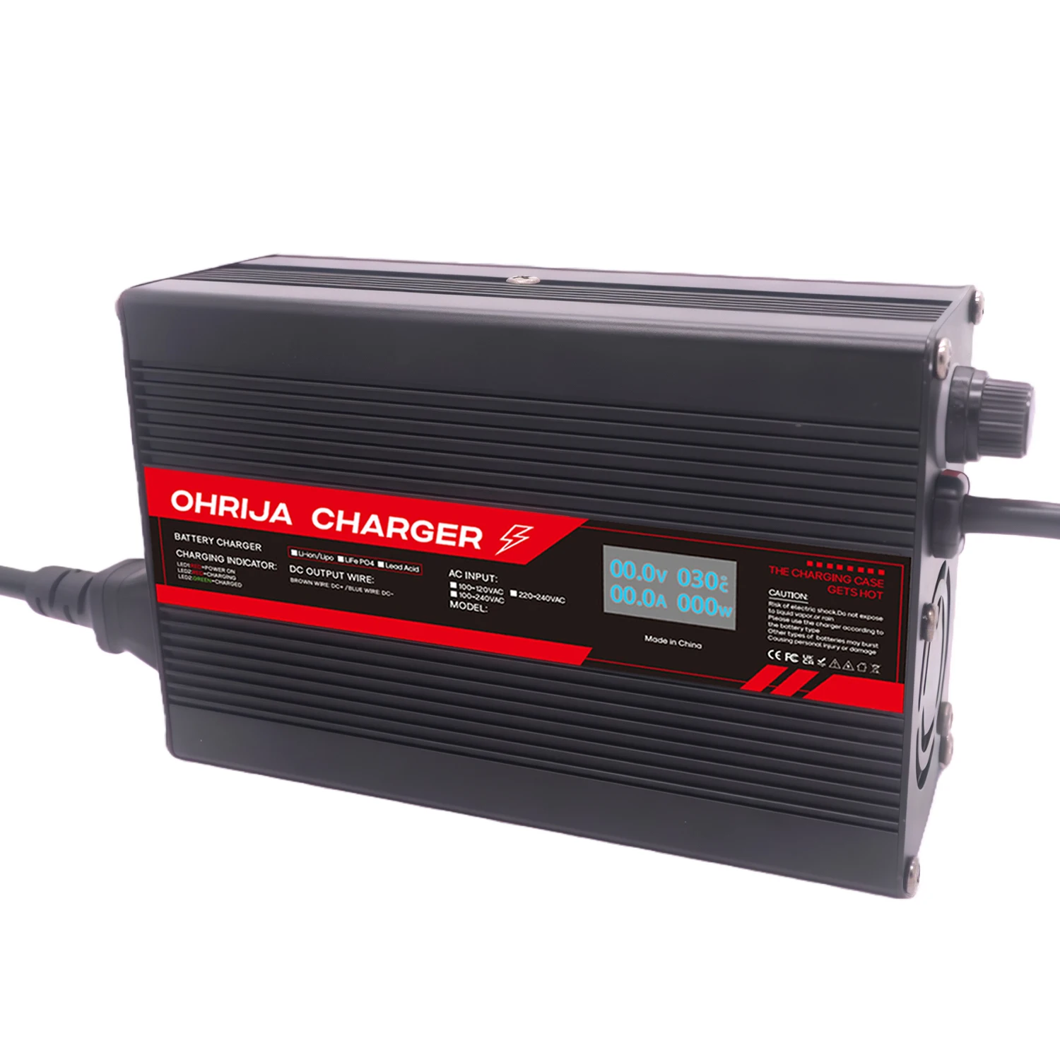 Cargador de batería de litio de 50,4 V y 5A, indicador LED para 12 cuerdas, carcasa ignífuga de 44,4 V, protección contra sobrecorriente, voltaje/cortocircuito