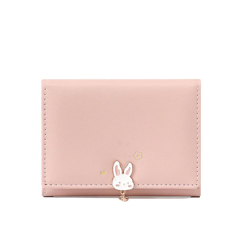Cartera corta fresca de estilo coreano para mujer, monedero triple con conejo bonito para estudiante, venta al por mayor de cuero