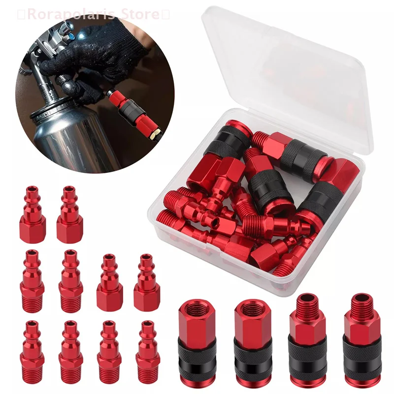 [cc] Accesorios para mangueras de aire de 14 piezas, kit de enchufe de aire de tipo industrial con acoplador de aire, tamaño de roscas de 1/4 de pulgada, accesorios para compresores de aire