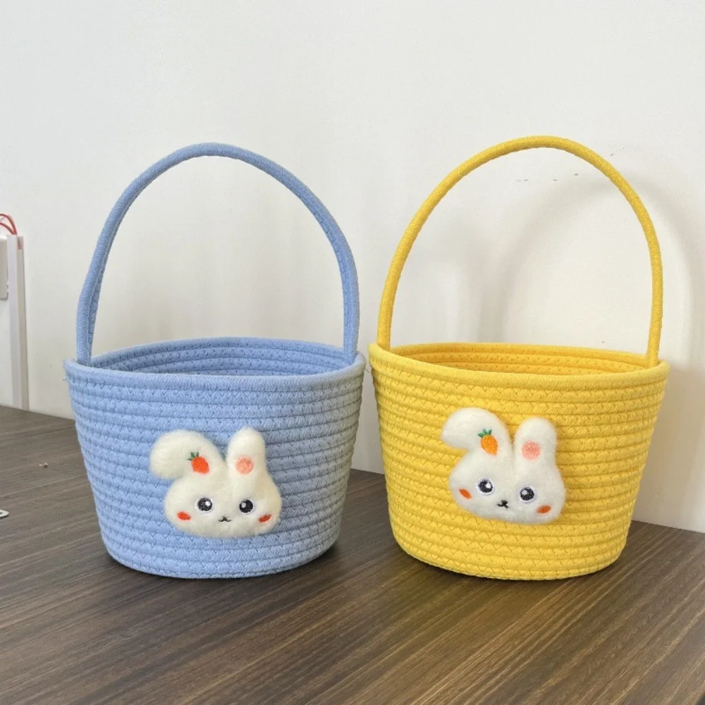 Cesta de almacenamiento con forma de conejo de dibujos animados, organizador de cuerda de algodón suave, cesta decorativa con forma de conejo, bolsa de regalo ligera para Pascua para sala de estar