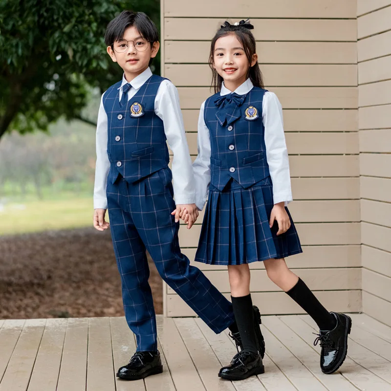 Chaleco a cuadros británico para niños, camisa, traje, pantalones, chaleco para niñas, blusa, faldas, uniforme escolar para niños, conjunto de ropa para estudiantes coreanos