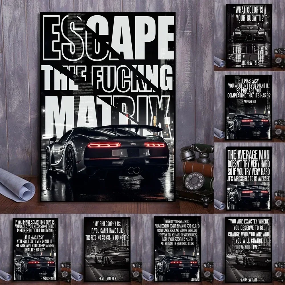 Citas motivacionales de coche negro moderno b-bugatti Andrew Tate, pintura en lienzo estética, carteles para decoración de sala de estar