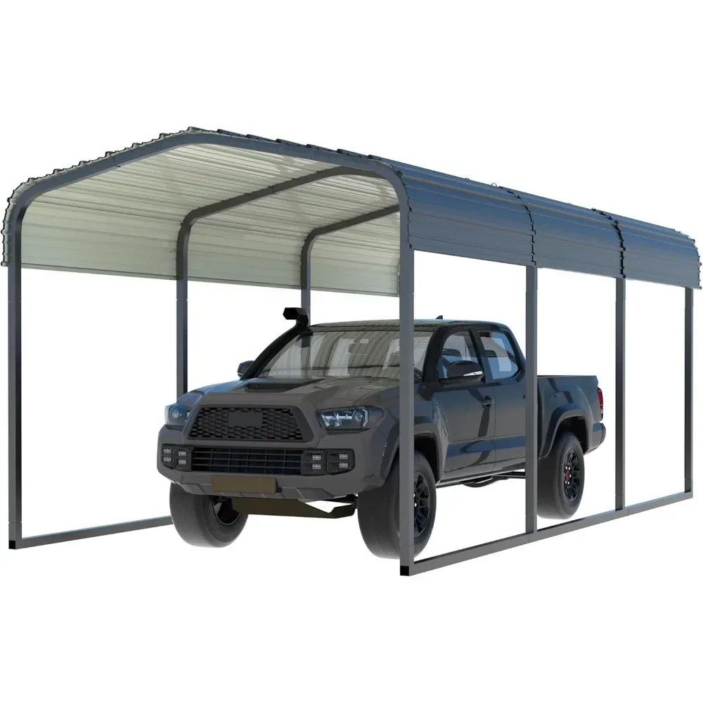 Cochera de metal de 10′ x 15′ con techo de acero galvanizado resistente, dosel grande mejorado para exteriores, puerto para automóvil