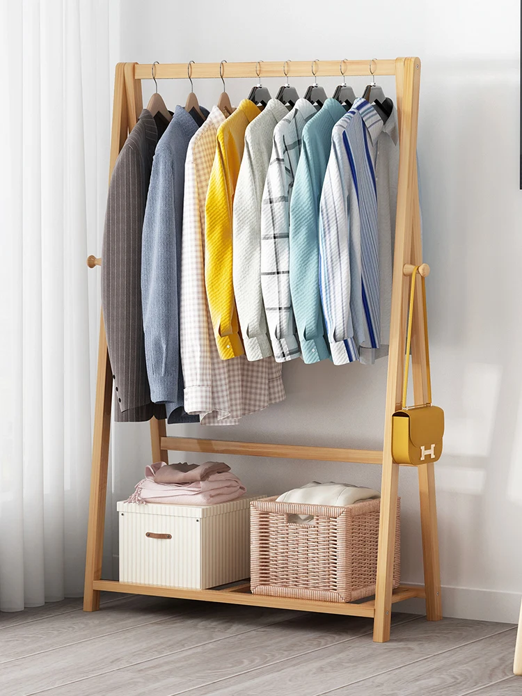 Colgador de ropa portátil Simple, soporte con rodillo equipado, gancho para abrigos en forma de A, Material de bambú para uso doméstico, opciones de doble capa individual