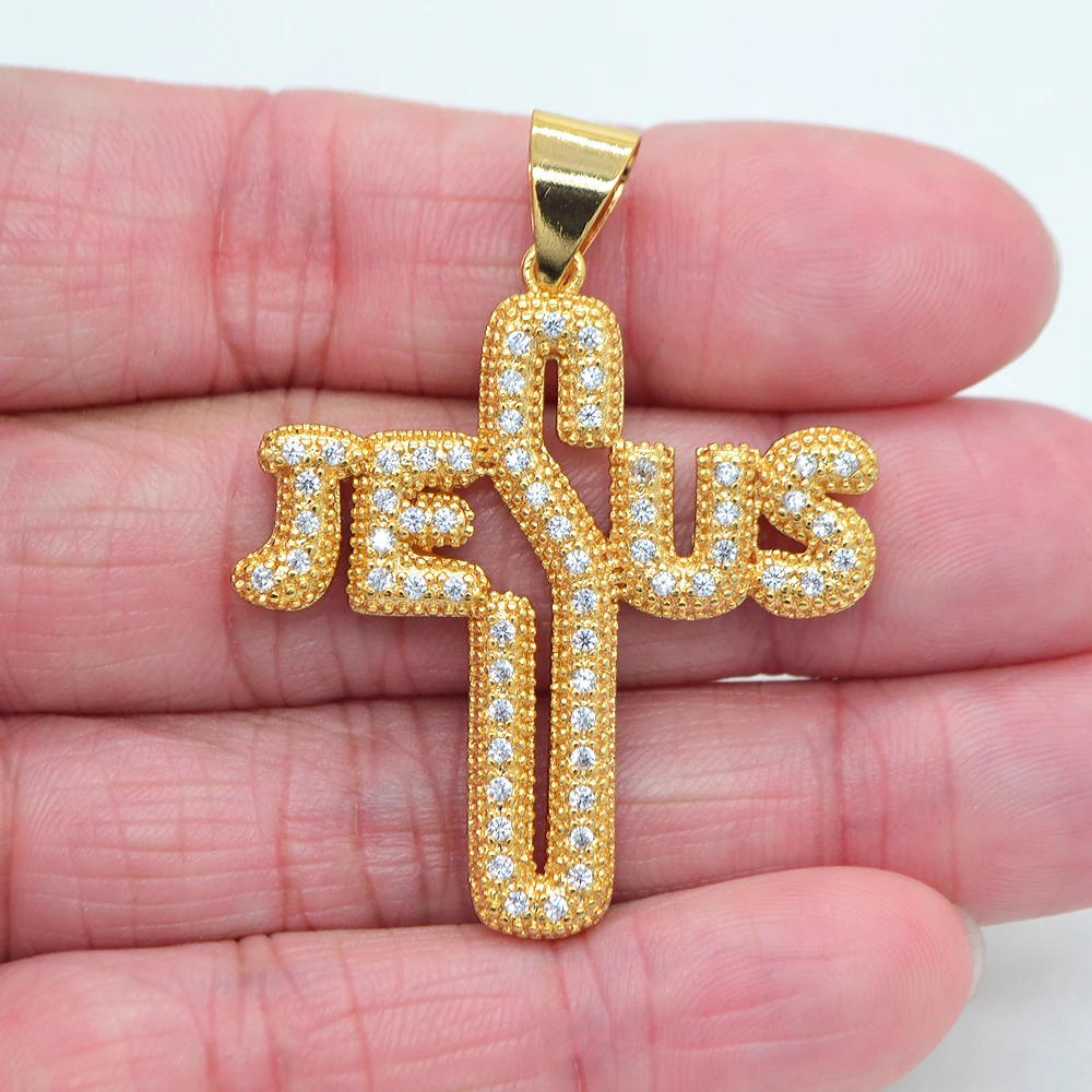 Colgante de circonia cúbica transparente de Color dorado de alta calidad, joyería ostentosa de Hip Hop, palabra de jesús