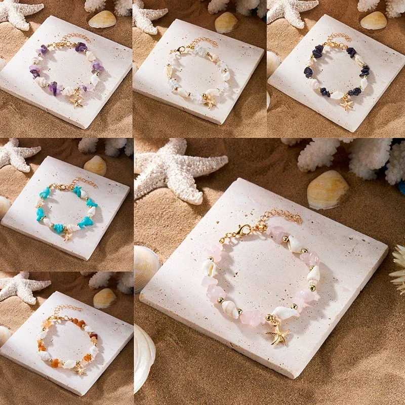 Collar bohemio de cuentas de concha de estrella de mar de playa para mujeres y niñas, pulsera de estrella de mar de concha de verano, tobillera de estilo de vacaciones, regalos