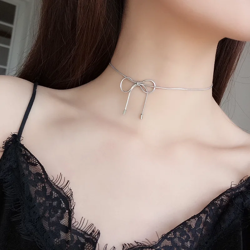 Collar de cadena con nudo de mariposa para mujer, gargantilla de lujo con diseño de cadena de clavícula, vestidos de fiesta, 2024
