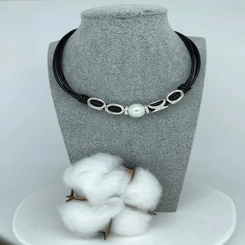 Sé el primero en valorar “Collar de cuerda de cuero geométrico de plata perla única de alta calidad, accesorios para mujer, regalos de fiesta para amigos”