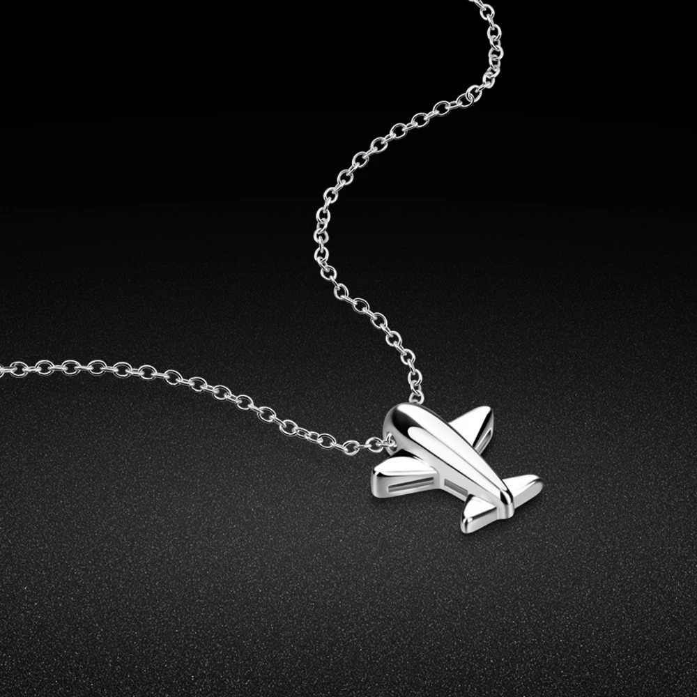 Collar de plata 925 con colgante de avión para niña, cadena de clavícula de plata maciza, regalo de cumpleaños, collar de plata para mujer