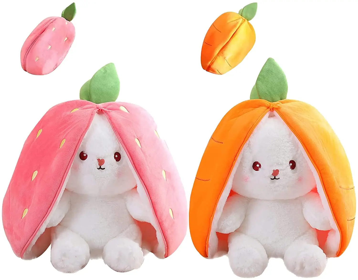 Conejo de Pascua de peluche para niños, de 2 piezas conejo de peluche suave, regalo de 7 «, fresa + zanahoria