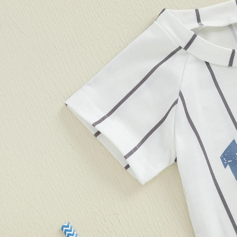 Conjunto de 2 piezas de camisetas y pantalones cortos a rayas de manga corta con bandera americana para el Día de la Independencia para niños