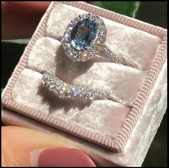 Conjunto de anillos de boda de cristal con diamantes de imitación para mujer, joyería nupcial, anillo de compromiso, regalo, blanco, azul, nueva moda