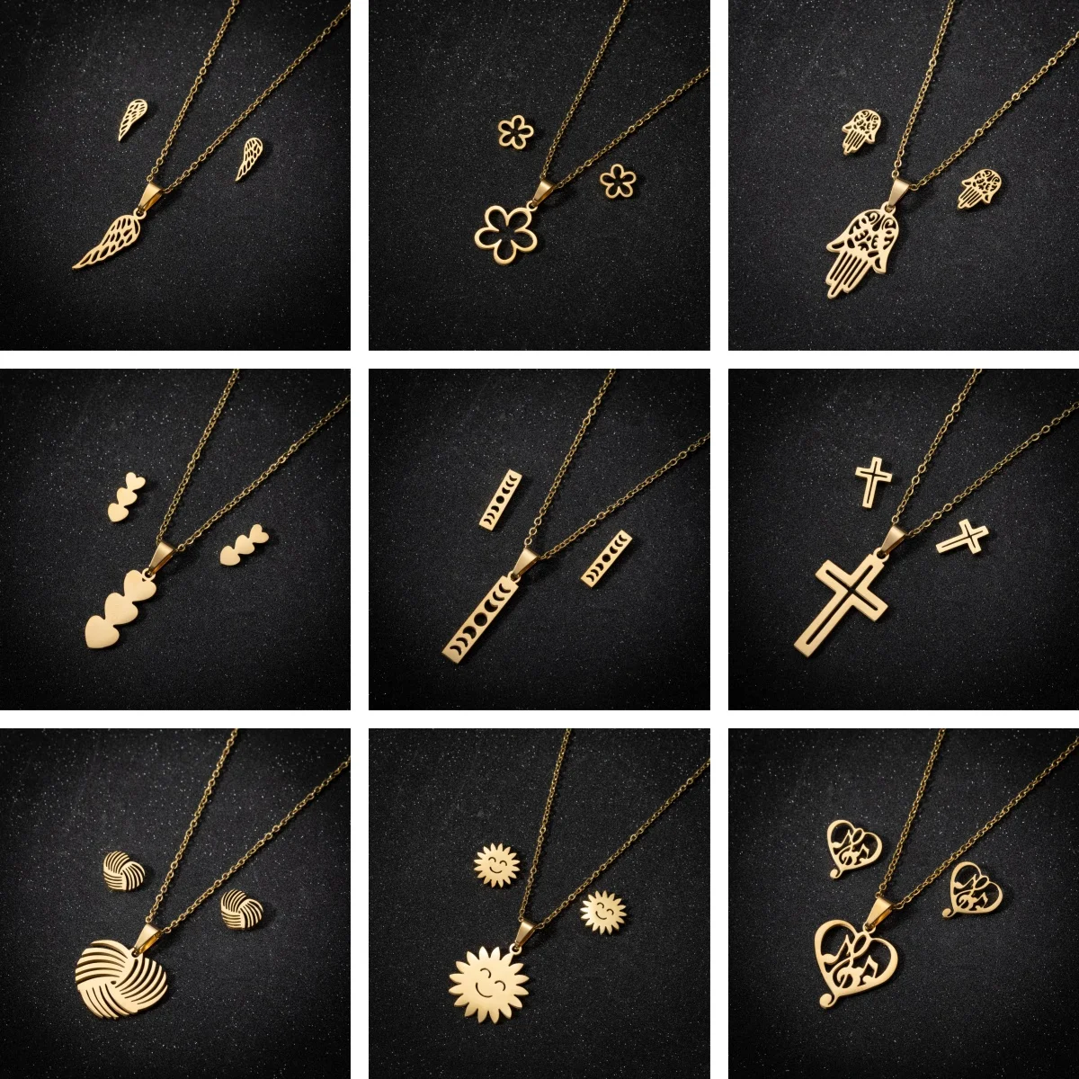 Conjunto de collar y pendientes bohemios elegantes con flores de amor para mujer, joyería de acero inoxidable, accesorios Harajuku, baratijas para mujer, regalo para parejas