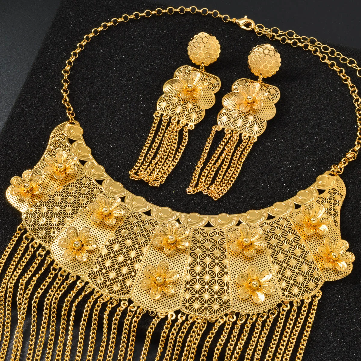 Conjunto de collar y pendientes largos chapados en oro africano de lujo, joyería con cuentas tribales para mujer, regalos elegantes para fiesta de cumpleaños y boda