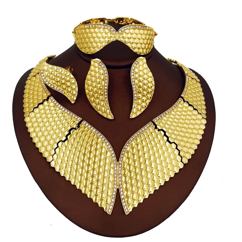 Conjunto de joyería de boda africana, collar grande exagerado, pulsera, pendiente, anillo, Color dorado de 18 quilates, regalos de joyería de fiesta africana de Dubái