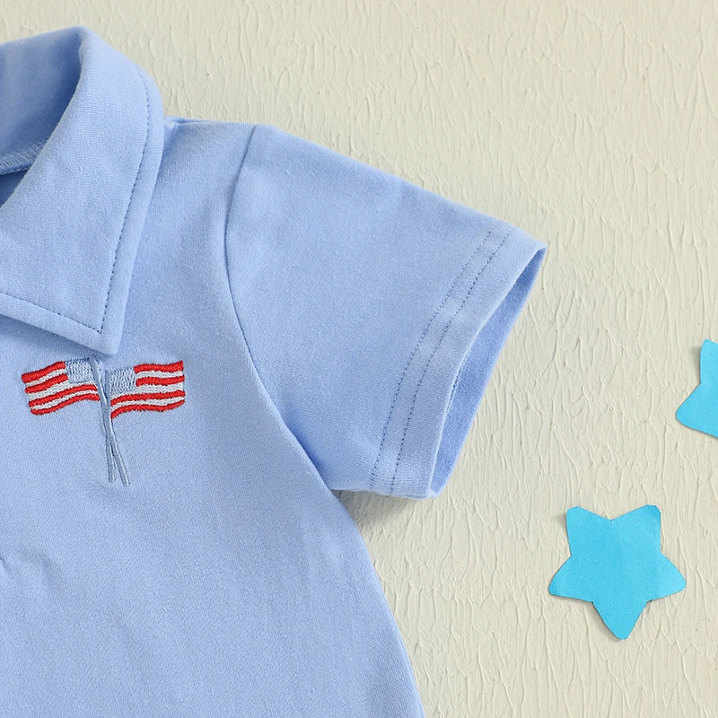 Conjunto patriótico para niño, camisa de rayas y estrellas rojas, blancas y azules, pantalones cortos de cintura elástica, conjunto del 4 de julio para verano