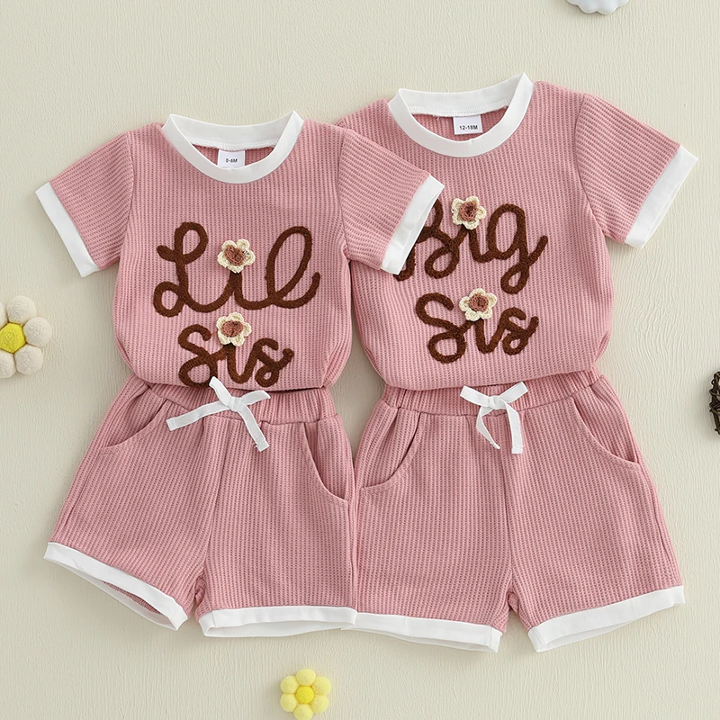 Conjuntos de ropa para bebés y niñas, 2 uds., camiseta de manga corta con cuello redondo y letras de flores y pantalones cortos, traje de verano para niños