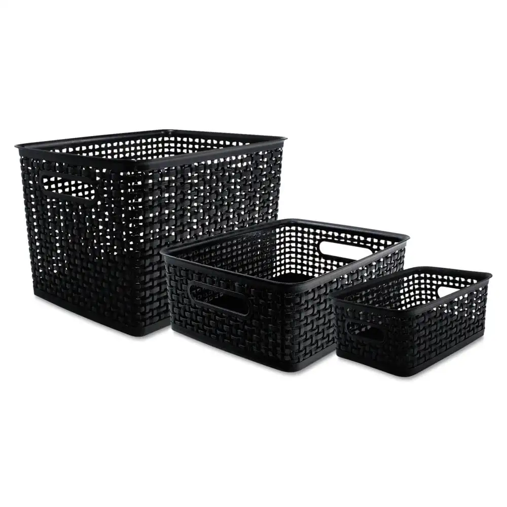 Contenedores tejidos, surtidos, plástico, negro, 3 contenedores