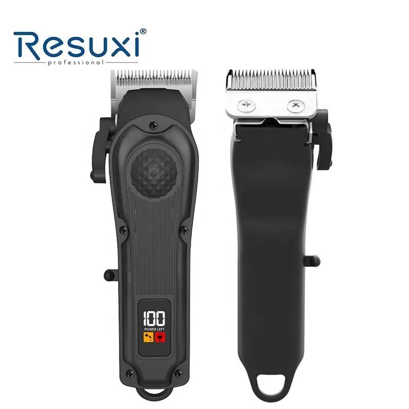 Cortadora de pelo eléctrica negra Resuxi YU01, cortadora de pelo de barbero inalámbrica profesional recargable para hombres, 1200mAh