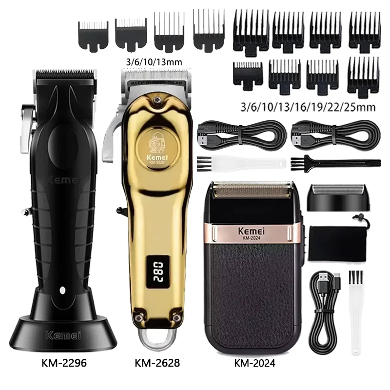 Cortadora de pelo Kemei Km-2296 Km-2628 Km-2024, cortadora de pelo con cuchilla para peluquero, afeitadora recargable inalámbrica
