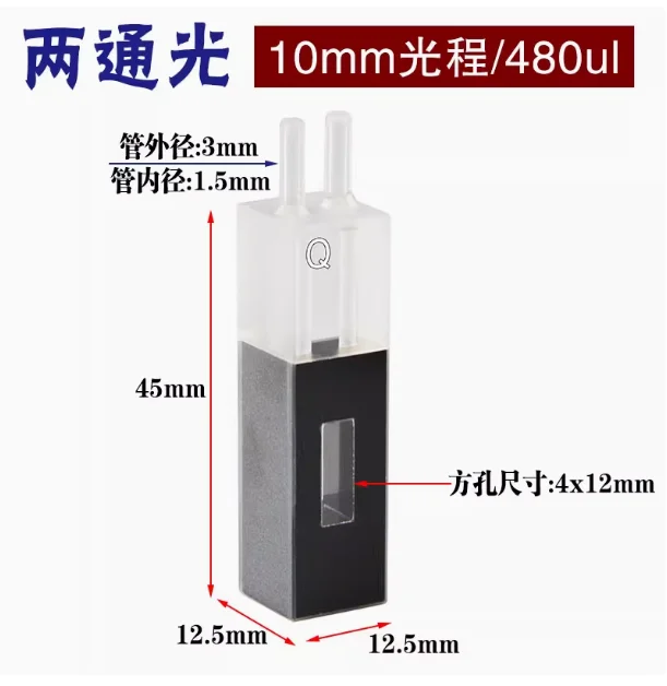 Cubeta de flujo de cuarzo con tubo de vidrio, longitud de camino, 480ul, 10mm, 1 ud.